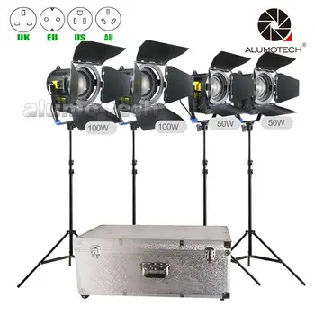ALUMOTECH Dimming 5500/3200K (50W+100W)X2 LED Focus Fresnel Spot Light+Stands+Case Kit for Studio Video Photography Film Camera